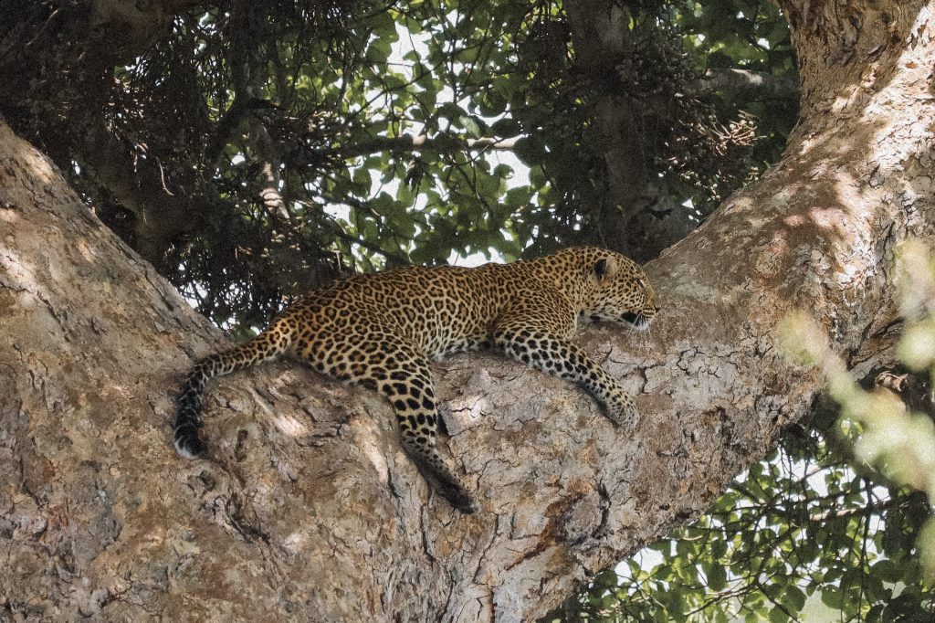 Niet alle dieren kun je waarnemen op ooghoogte. Hoog in de boom zijn vaak dieren te vinden zoals een luipaard, Afrikaanse wilde kat en verschillende vogels. Beneden op de grond zie je vaak dieren zoals slangen, mestkevers en stokstaartjes. Dassen en schildpadden zijn er ook vaak te vinden. Zelfs wanneer je geen dieren ziet, kun je nog wel sporen zien zoals uitwerpselen, nesten en voetafdrukken. Dit is een teken dat een wild dier in de buurt kan zijn. Gedurende onze safari spotte we een luipaard in de boom.