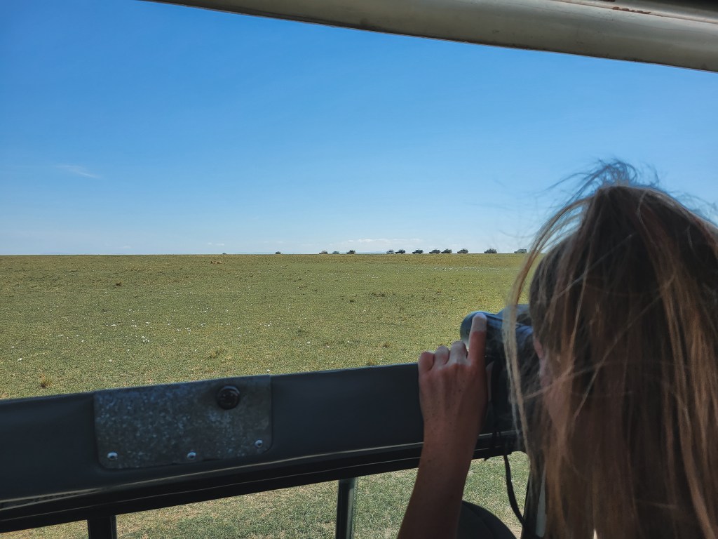 Geduld speelt een grote rol bij het spotten van wilde dieren. Zorg ervoor dat je langzaam rijdt om er zeker van te zijn dat je niets mist. Houd je ogen open. Wacht wanneer je een dier in de verte ziet. Zo zagen we twee cheeta’s in de verte liggen. Na een half uur kwamen ze vlak langs onze auto lopen.