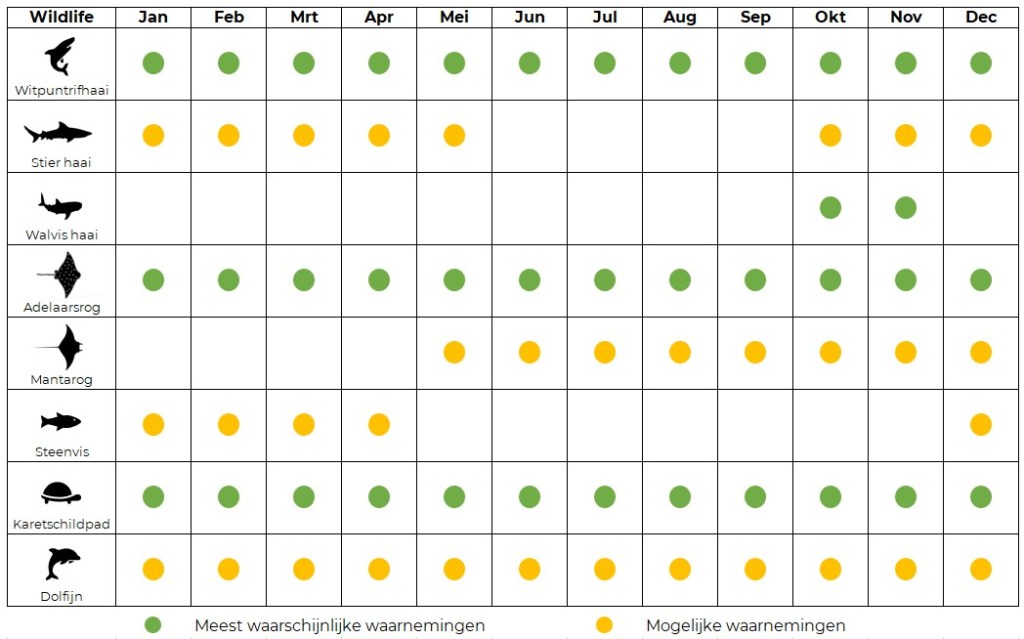 De beste tijd om te duiken en snorkelen op de Seychellen zijn de maanden april, mei, oktober en november. Omdat er in deze maanden geen sterke wind is, is de zee rustig. Hierdoor is het zicht onder water optimaal (tot maximaal 30 meter). De watertemperatuur in de Seychellen is tussen de 23 en 28 °C, met de laagste temperaturen tussen juli en september. In de maanden oktober en november heb je kans op het zien van walvishaaien rondom het eiland Mahé.