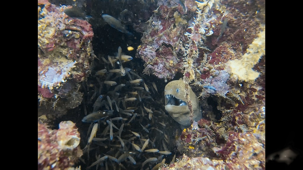 Twin Barges zijn twee wrakken die vlak naast elkaar liggen omringd door koraal. Hoogtepunten van onze duik was het duiken door de verschillende gangen van het wrak. In het wrak zagen we verschillende murenes en tropische vissen.