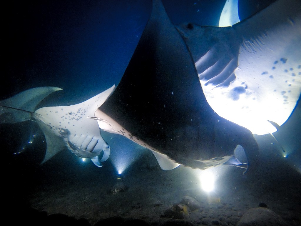 Tip: Plan een nachtduik met manta roggen niet op de laatste dag van je vakantie. Mocht het namelijk slecht weer zijn dan kan de duik worden gecanceld.