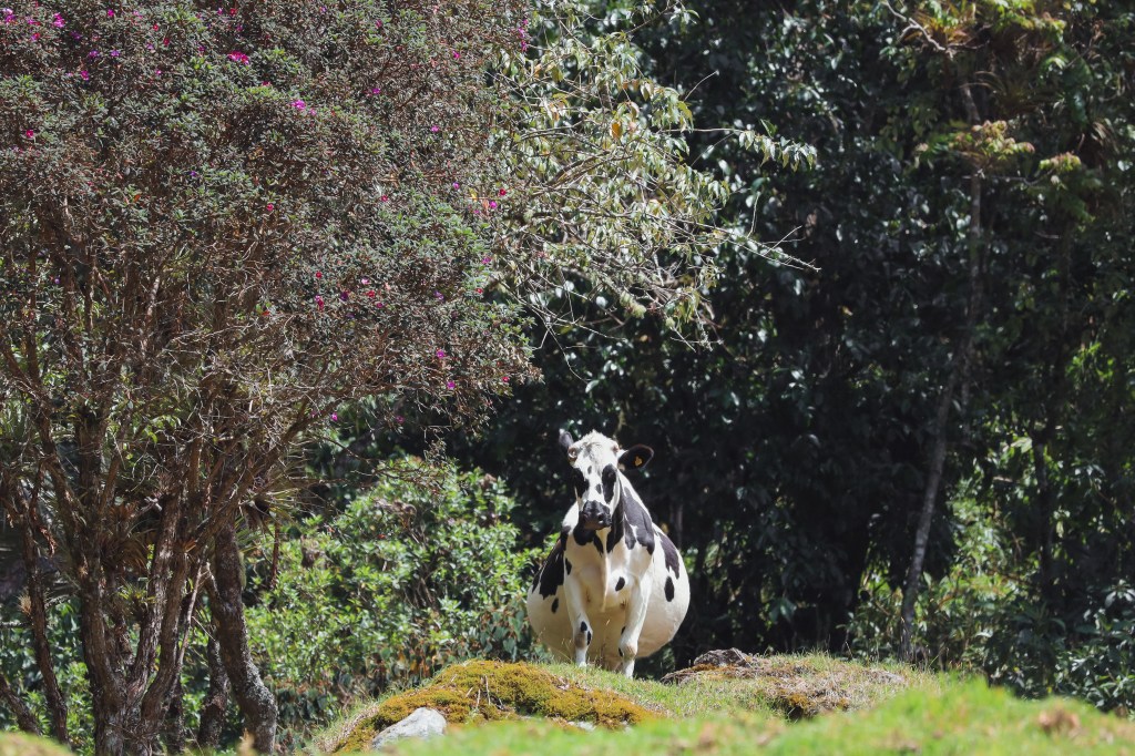 Het einde van de wandeling is door een boerenlandschap. Het gebied is meer open en vlak met nog steeds uitzicht op de waxpalmen, maar dan van onderaf. In het boerenlandschap kunnen een aantal koeien niet ontbreken, heel apart om te zien hoe de koeien hier blijven staan tegen de heuvels op. Ongeveer 15 minuten voor het einde van de hike nader je een privéterrein waar ze nog eens toegangsprijs vragen.