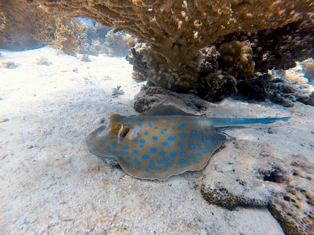Shaal El Erg, ook bekend als Dolphin House, is gelegen in het noorden van Hurghada. Het is een enorm hoefijzervormig rif met een diversiteit aan koralen en onderwaterleven. Deze duiklocatie is perfect voor nieuwe duikers, maar ook om te snorkelen. Het rif heeft een kanaal met een kleine lagune. Op deze plek zijn vaak dolfijnen te zien! Het onderwaterleven bestaat uit murenen, zeeslakken, roggen en kleurrijke vissen. Helaas zagen we geen dolfijnen met het duiken, maar wel onderweg op de boot. Hoogtepunten van onze duik waren pijlstaartroggen, koraalduiven en zeeslakken.