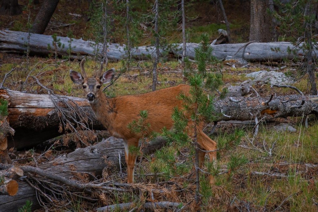 Het meer is omringt door bos en de thuisbasis van vele soorten dieren, zoals watervogels, zangvogels en herten. We zagen verschillende herten langs het pad. We besloten om Lembert Dome en Dog Lake te combineren tot een loop van 8 km.