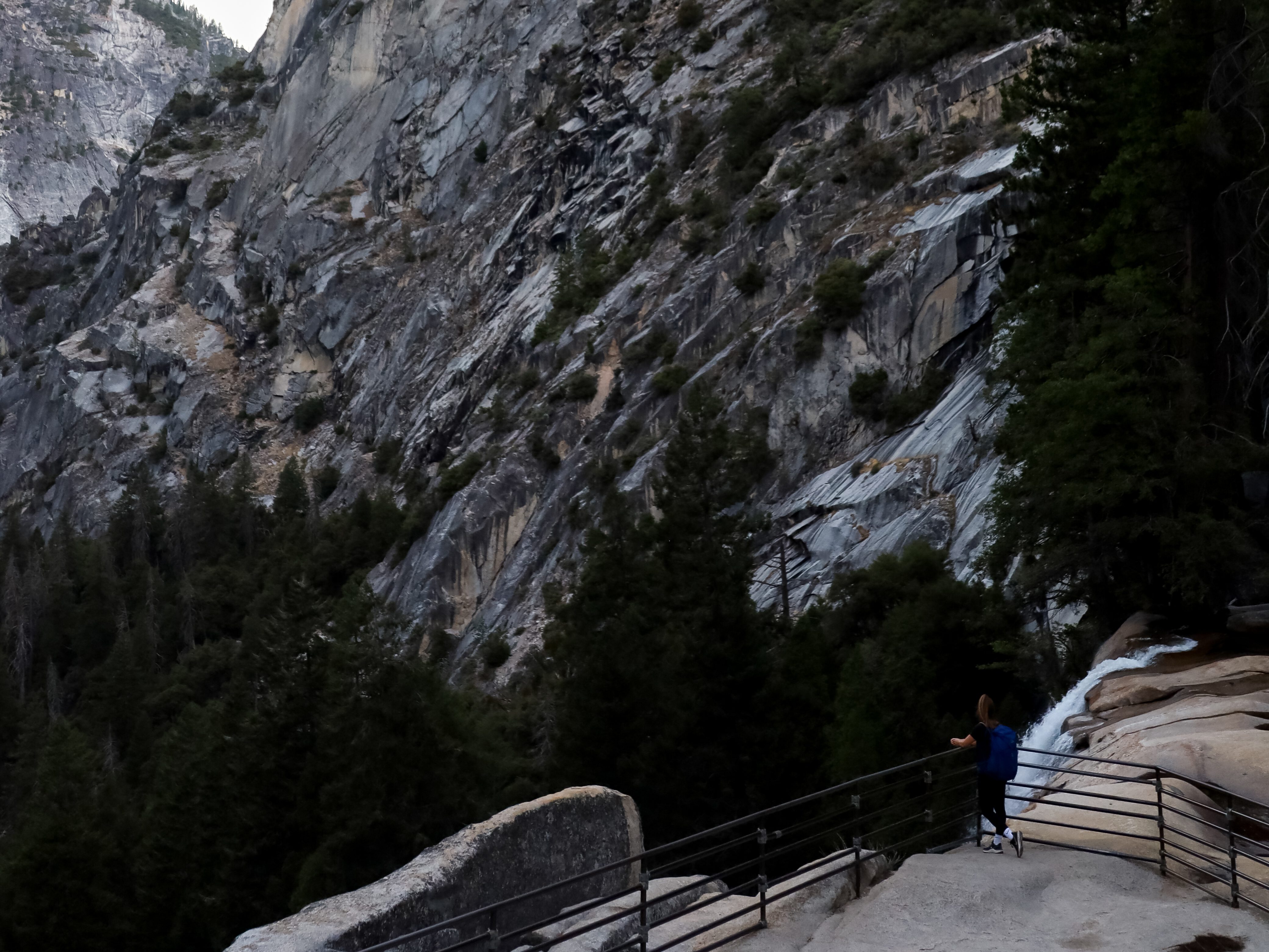 De wandeling naar de watervallen is zeer populair en dat is niet voor niets. De routes John Muir en Mist Trail bieden spectaculaire, close-up uitzichten op de watervallen. Het eerste stuk van het pad geeft toegang tot de Vernal Fall Footbridge. De top van de Vernall Fall bereik je het snelst om de Mist Trail te volgen. Het pad gaat omhoog via een steile granieten trap van meer dan 600 treden. Bovenaan de top heb je een prachtig uitzicht op de 317 meter hoge waterval. Vanuit de Vernal Fall kun je ervoor kiezen om verder te wandelen naar Nevada Fall. De Nevada Fall is een 180 meter hoge waterval. Vanaf de top van de Nevada Fall liepen we verder naar Half Dome!