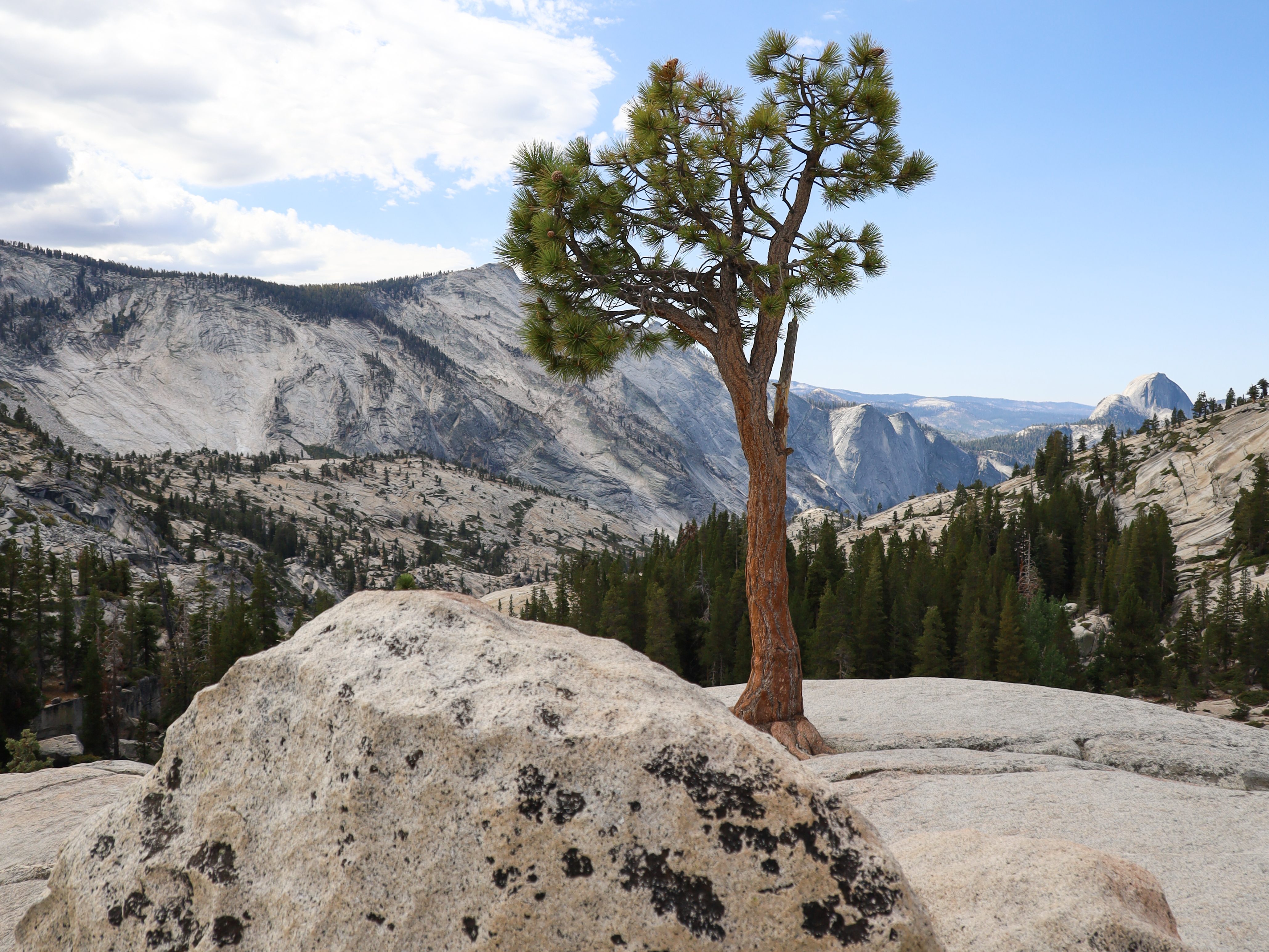 Olmsted Point biedt een panoramisch uitzicht op Half Dome, Tenayaka Lake en Clouds Rest. Vanuit het oosten kijk je naar beneden op Yosemite Valley. Olmsted Point is gelegen aan de TIoga Road, houd er rekening mee dat de weg gesloten is in de winterperiode.