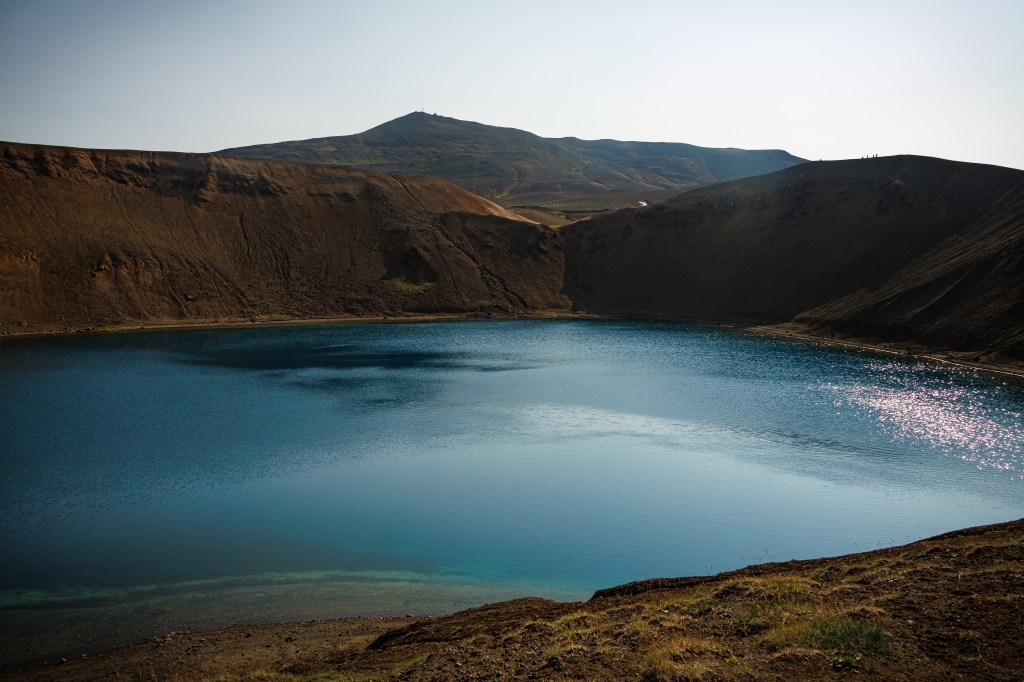 De eerste stop in Mývatn is Hverfjall (ook wel bekend als Hverfell) een grote vulkaankrater. De krater is 1 km breed, en 312 meter hoog. De krater zelf is 140 meter diep. De krater is te bereiken aan de hand van twee paden, een vanuit her noordwesten en de andere vanuit het zuiden. De wandeling naar de rand duurt ongeveer 20 minuten en vanaf de top heb je een prachtig uitzicht op de krater en het Mývatn meer. Voordat we naar het geothermische gebied Námaskarð, ook bekend als Hverir reden, maakte we een korte stop bij Grjótagjá. Grjótagjá is een ondergrondse lavagrot met blauw water, zwemmen is hier echter verboden.
