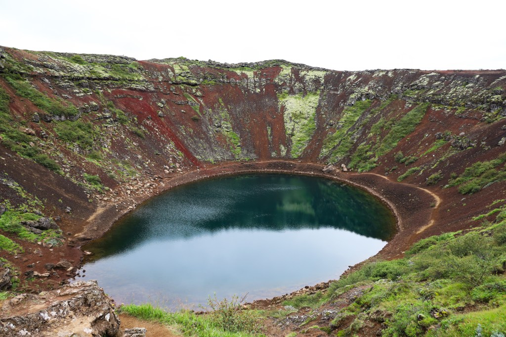 Kerið is een slapende vulkaankrater waar je rond omheen kunt wandelen, of de trap naar beneden kunt nemen om de bodem van de krater te bekijken. De krater is gevuld met water met een groenblauwe kleur. De Keriðkrater is een van de weinige natuurbestemmingen in IJsland waar je een kleine fee moet betalen.
