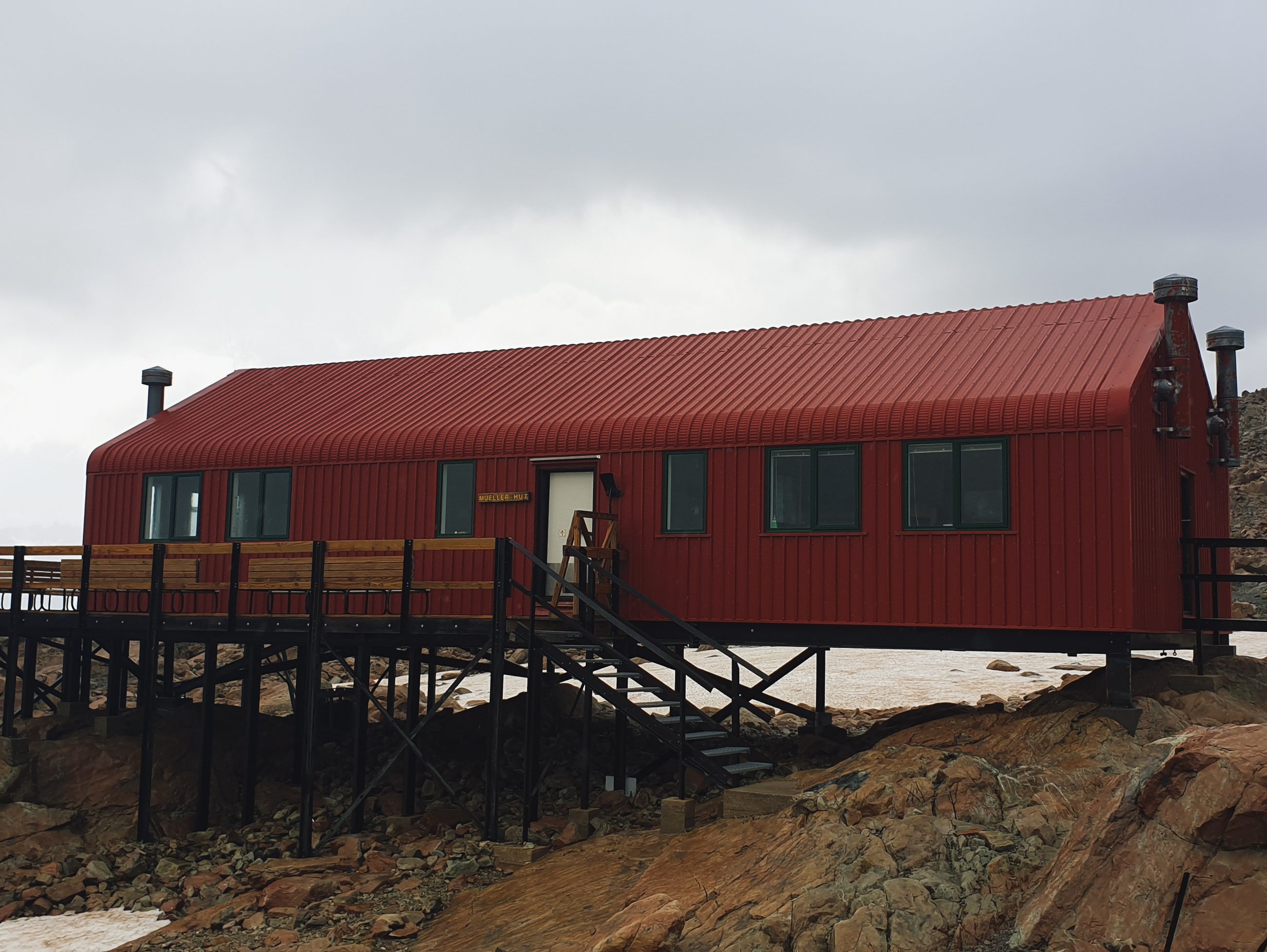 De Mueller Hut Route is een alpine avontuur en begint met een zware klim over de Sealy Tarns Track, die bestaat uit meer dan 2000 steile treden. Achter de bergmeertjes verandert het pad in een ongemarkeerde alpine route, die rotsachtige hellingen en met sneeuw bedekt terrein doorkruist voordat je de Mueller hut bereikt. De rode hut biedt prachtige uitzichten op de gletsjers, de Hooker Valley en de torenhoge toppen van Aoraki/Mount Cook. Overnachten in Mueller Hut biedt de kans om de zonsopgang of zonsondergang te zien boven de Southern Alps, vooraf reserveren is essentieel.