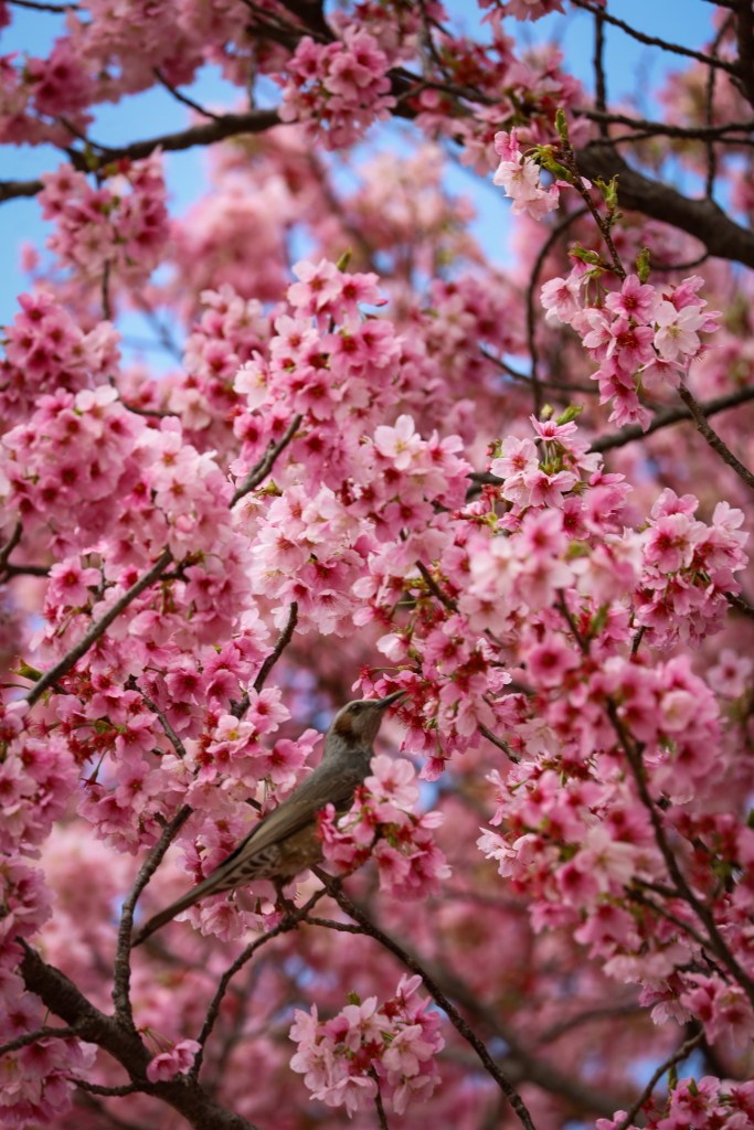 Kawazu-zakura – de kersenbloesembomen behoren tot de vroegst bloeiende kersenbomen in Japan en verschijnen al in februari. De felroze kleur en langdurige bloei (tot wel een maand) maken het tot een populaire kersenbloesem om vroeg in het seizoen te zien.