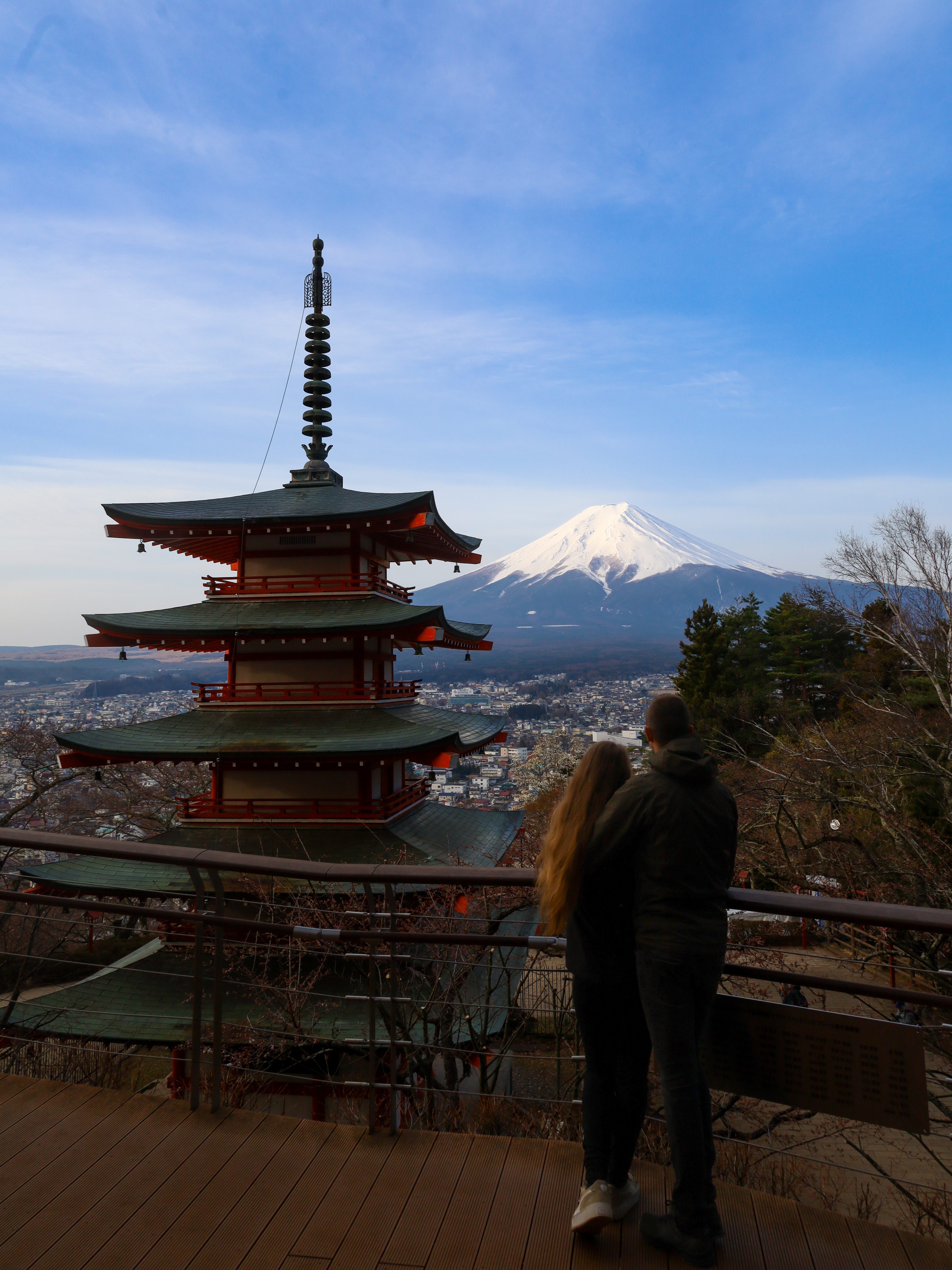 Het meest iconische uitzicht op Mount Fuji. De rode pagode met uitzicht op Mount Fuji is een must-visit. De uitzichten zijn met name spectaculair in de lente vanwege de kersenbloesems en in de herfst vanwege de prachtige herfstkleuren. De klim naar de pagode omvat ongeveer 400 treden, maar het uitzicht aan de top is onmisbaar!