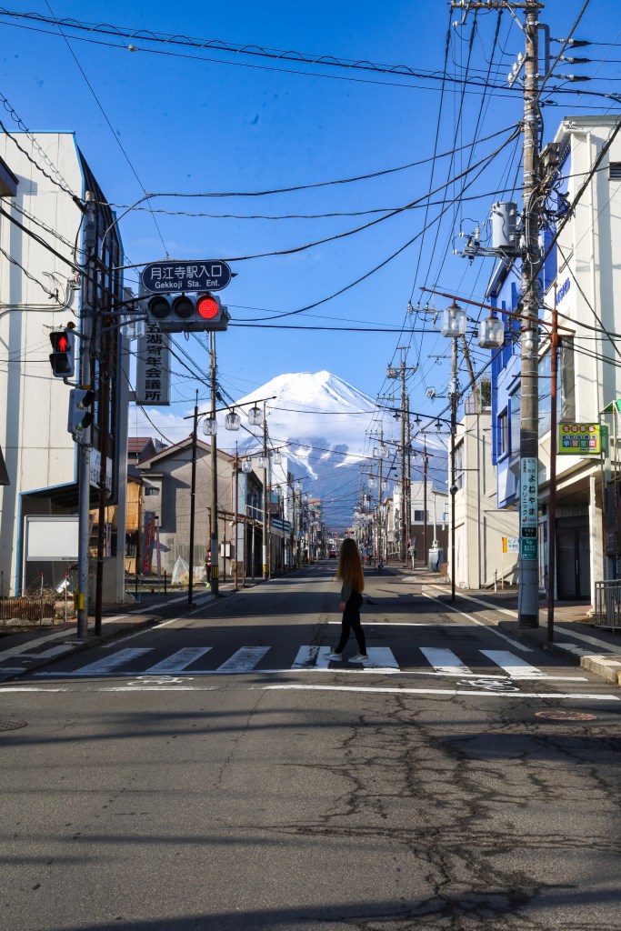 Honcho Street is een traditionele winkelstraat waar Mount Fuji aan het einde van de straat te zien is! Het uitzicht is het mooist vroeg in de ochtend, voordat het verkeer toeneemt.