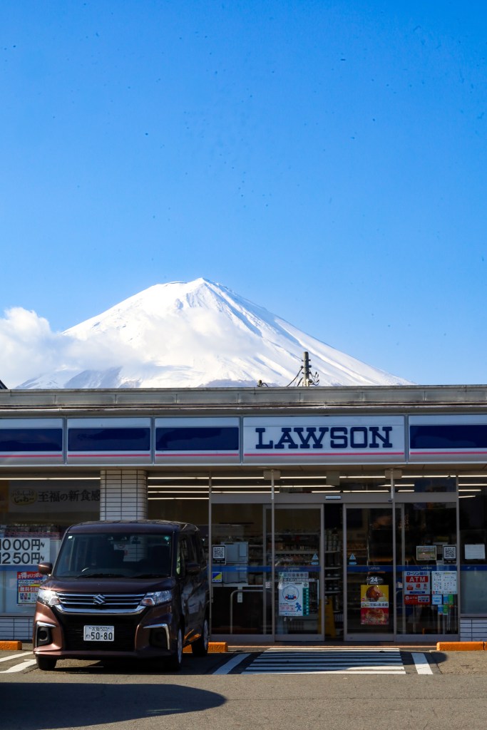 Dit is misschien wel de beroemdste convenience store van Japan. Mount Fuji komt boven de convenience store uitgestoken, waardoor het een van de meest virale fotolocaties is geworden. Koop je ontbijt en geniet van het uitzicht.