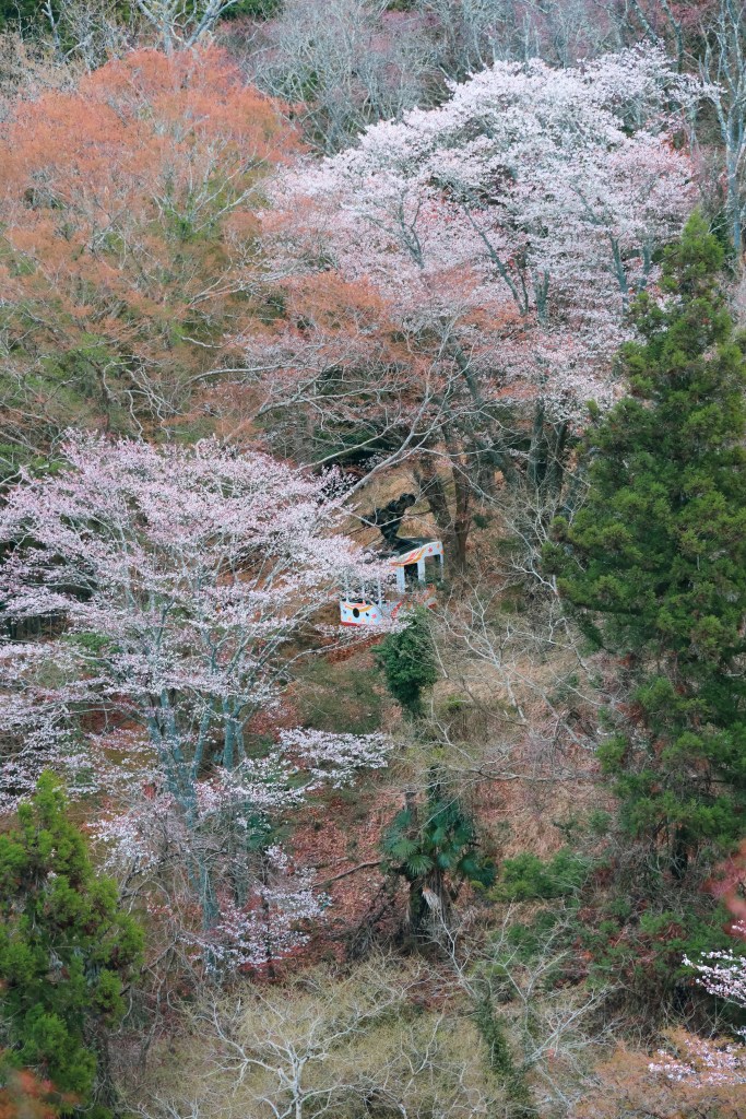 Ten slotte de laatste zone Oku Senbon. De wandeling vanuit Kami Senbon naar Oku Senbon is 3 à 4 km, wat neerkomt op een totale afstand van 7 à 8 km vanaf het station. Een wandeling van 3 uur inclusief verschillende stops bracht ons bij de laatste zone. Door de hogere ligging bloeit Oku Senbon het laatst, meestal van midden tot eind april, lang nadat de rest van de kersenbloesems in Kansai is verwelkt.